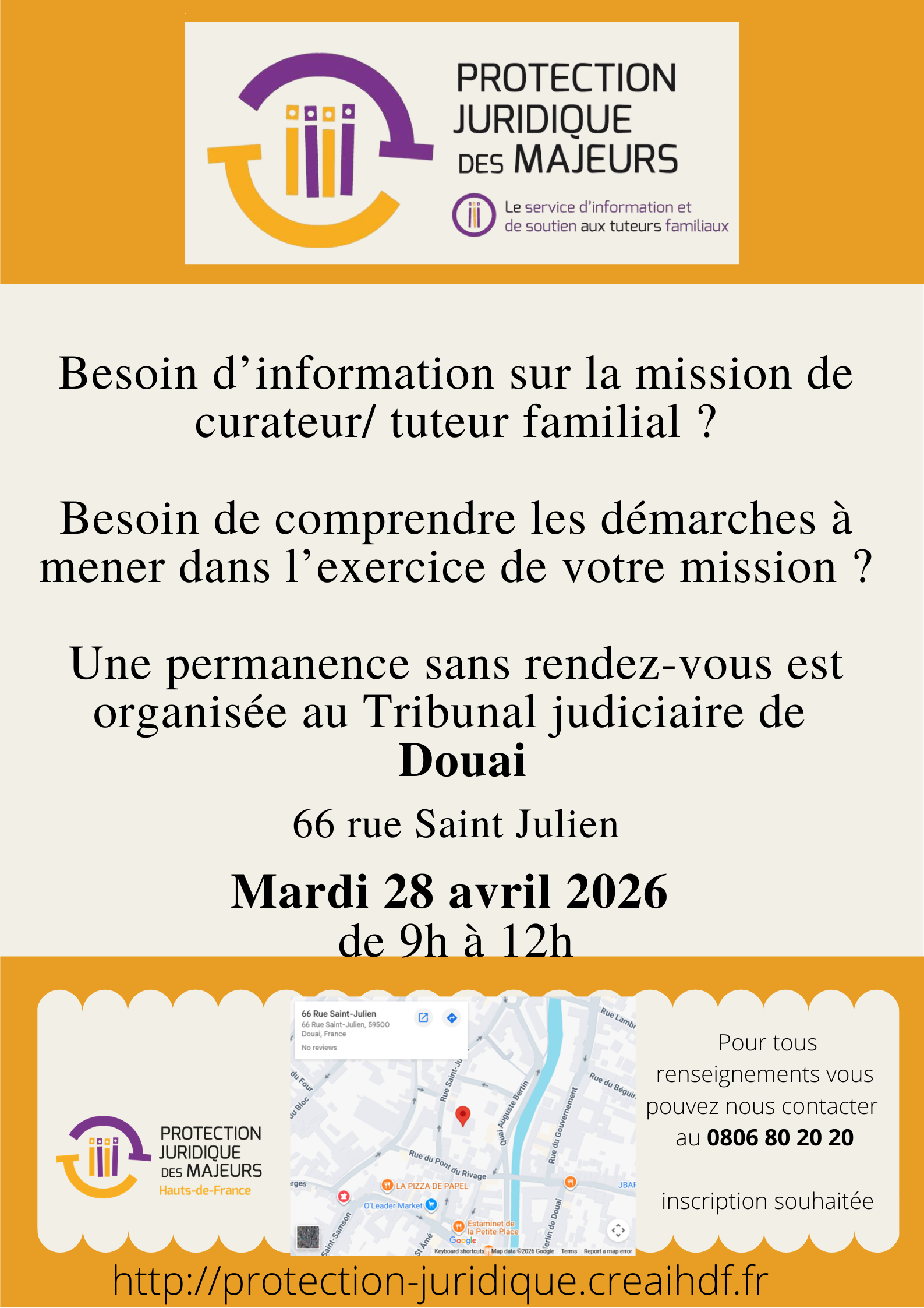 Le Service d’Information et de Soutien aux Tuteurs Familiaux vous propose des permanences ponctuelles sans rendez-vous, organisées au tribunal judiciaire de Douai